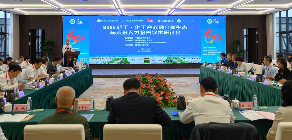 金秋十月,我校在喜迎建校六十周年华诞的浓厚氛围中,又迎来了一场学术盛宴。10月17日,“2025轻工・化工产教融合新生态与未来人才培养学术研讨会”在我校李白河校区盐都音乐厅315会议室举行。本次研讨会由中国高等教育学会指导,四川省高等教育学会、中国高等教育学会产教融合研究分会联合主办,由我校承办,来自全国轻工、化工领域专家学者和企业代表齐聚一堂,围绕“数智驱动・范式重构”主题,共商产教融合创新路径,共绘未来人才培养蓝图。大会开幕式由中国高等教育学会产教融合研究分会秘书长陈伟主持。